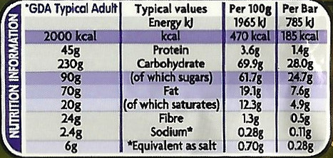 This bar has 185 calories, with 68 of them (37%) from fat.