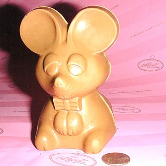 In doing the research for this page, I found quite a few really cute chocolate mice. And some not so cute. I even discovered it's fairly easy to make your own chocolate mouse. Although the easily homemade ones are much more look-vaguely-mouselike rather than actually resembling a cartoon mouse.