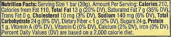 This bar has 210 calories, with 110 of them (52%) from fat.