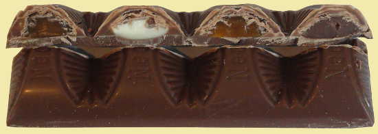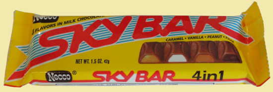 Sky Bar is a milk chocolate bar that has four separate filled sections. But what's unusual about this is that each section has a different kind of filling: