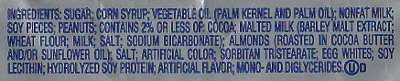 - If you eat this bar without reading the label or paying close attention, you might think the pieces embedded in the brown core are peanut pieces. And indeed, some of them are. But when we look at the ingredients list, we see that soy pieces come before peanuts. So, there are more soybean pieces than peanut pieces. And soybeans are usually about 75% cheaper than peanuts.
